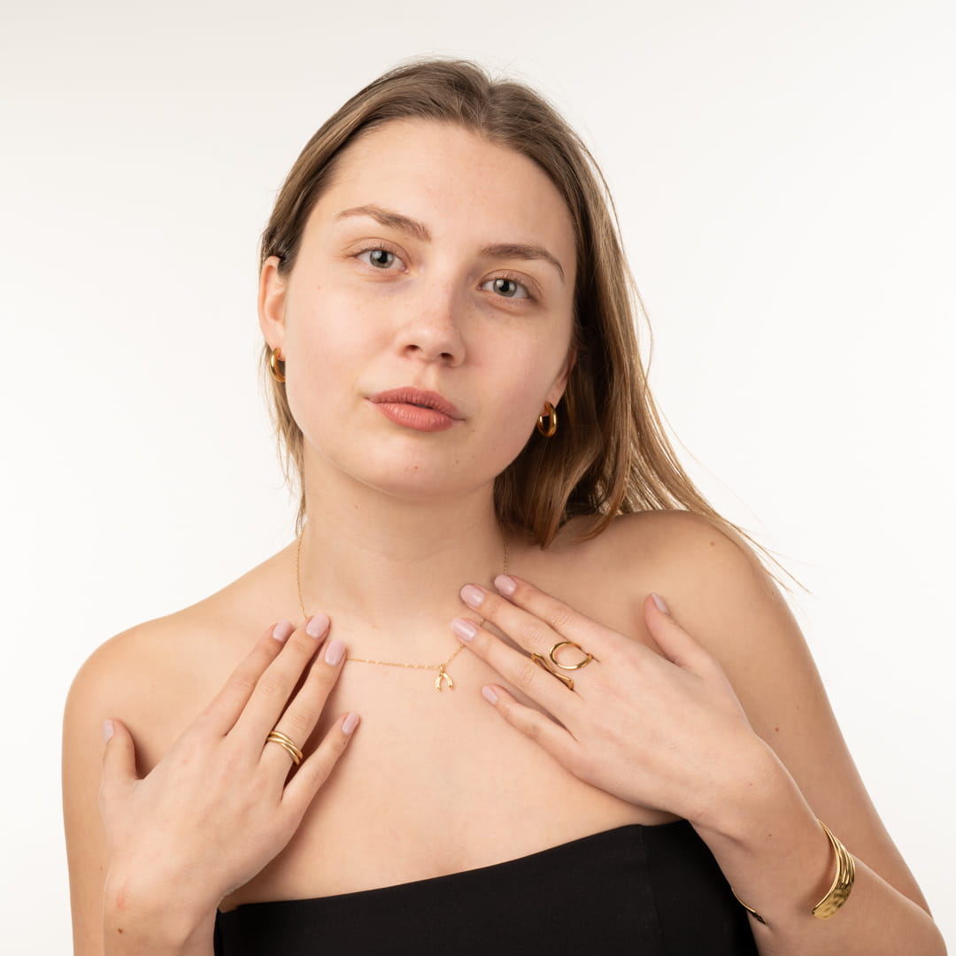 Wir wollten ein Schmuckstück kreieren, das diese positive Energie in den Alltag übersetzt. Die Astra Wishbone soll dich daran erinnern, dass kein Wunsch zu gross und kein Traum zu weit entfernt ist. Die klaren, ungebrochenen Linien des Anhängers symbolisieren den direkten Weg, den wir gehen können, wenn wir an unsere eigenen Möglichkeiten glauben. Wenn du diese Kette trägst, soll sie ein stiller Anker für dich sein – ein kleiner Reminder bei jedem Blick in den Spiegel, dass das Universum (die “Astra“) immer auf deiner Seite ist. Ein moderner Talisman für die Frau, die mit Leichtigkeit und Vertrauen durch die Welt geht.