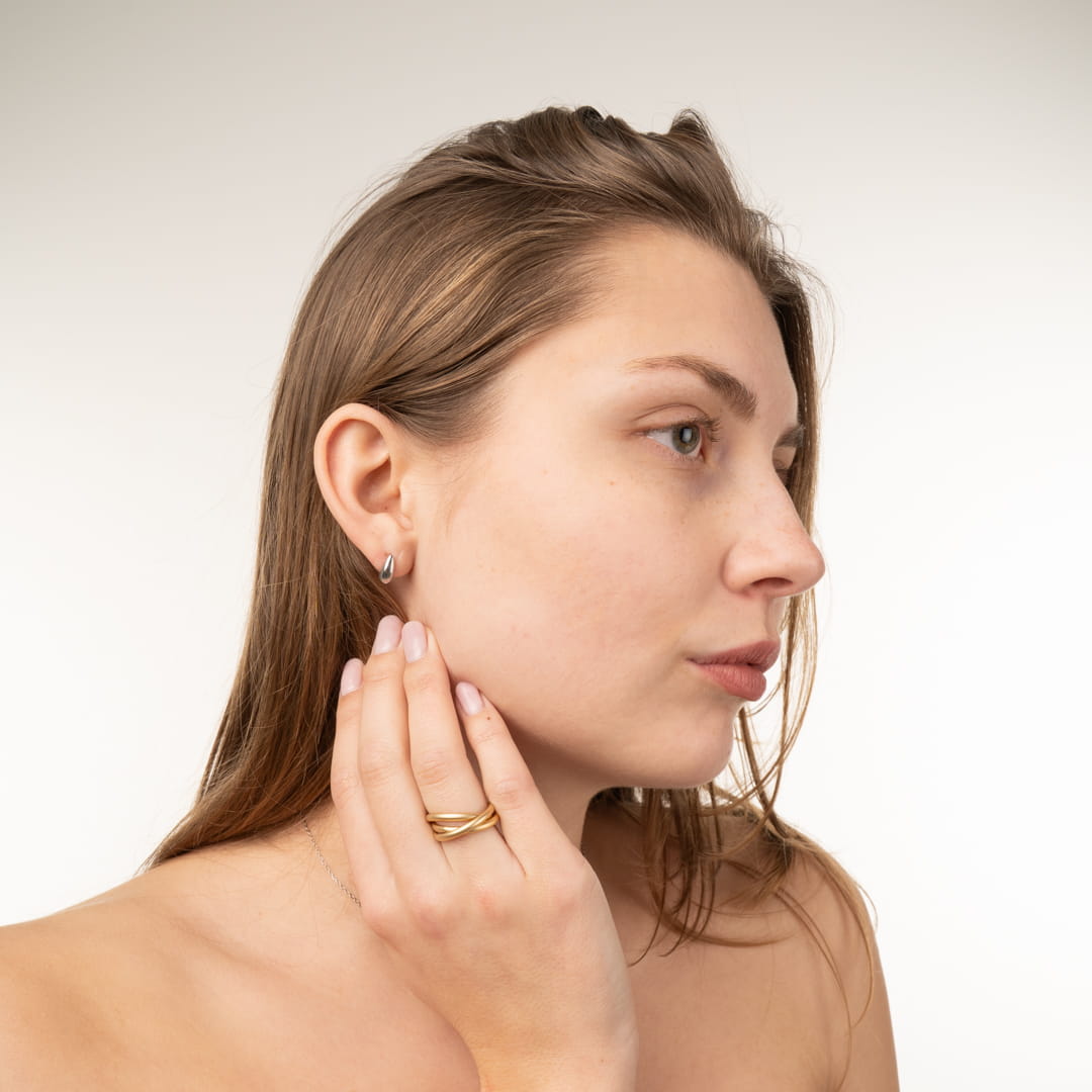 Puristische Eleganz in fliessender Form. Diese silbernen Ohrstecker wirken wie eingefrorenes Mondlicht, das sich sanft und natürlich an dein Ohrläppchen schmiegt.