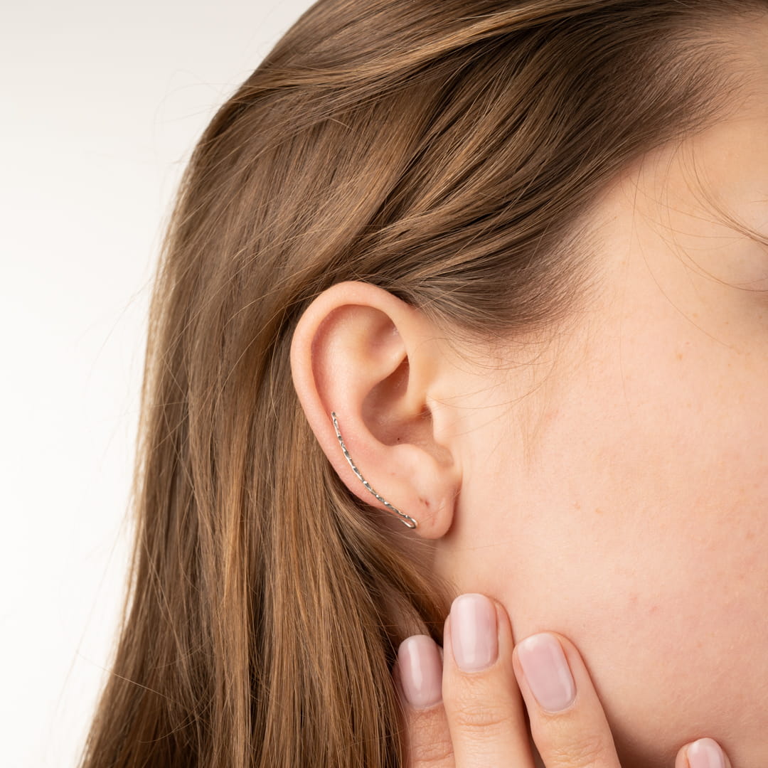 Ein leuchtender Pfad entlang deines Ohrs. Dieser minimalistische Ohrkletterer folgt der natürlichen Kurve deines Ohrläppchens und setzt einen modernen, raffinierten Akzent.