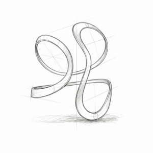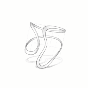 Wir wollten einen Ring entwerfen, der sich wie eine fliessende Bewegung anfühlt, die mitten im Schwung angehalten wurde. Die Inspiration kam von modernen Skulpturen und der perfekten Geometrie einer Helix. Es ist dieses Spiel aus Kurven und Licht, das uns fasziniert hat.